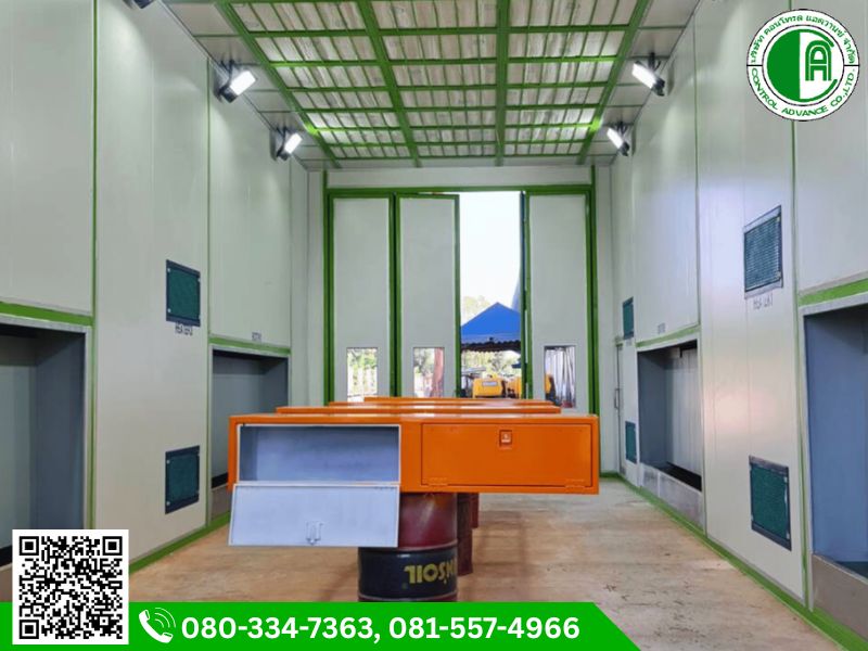 รับออกแบบสร้าง ห้องพ่นสี ตู้บูธพ่นสี (Spray booth) และรับสร้างตามแบบ ติดตั้งอุปกรณ์ในระบบพ่นสีอุตสาหกรรม ทั้งระบบตั้งแต่ระบบล้างไขมันเตรียมผิว (Pre-treatment system) เคลือบผิวโครเมท ระบบห้องพ่นสี ระบบกำจัดไอระเหยเคมี กลิ่น ระบบโซ่และสายพานลำเลียงชิ้นงานเข้าตู้อบแห้ง ห้องอบแห้ง จนเสร็จสิ้นกระบวนการ